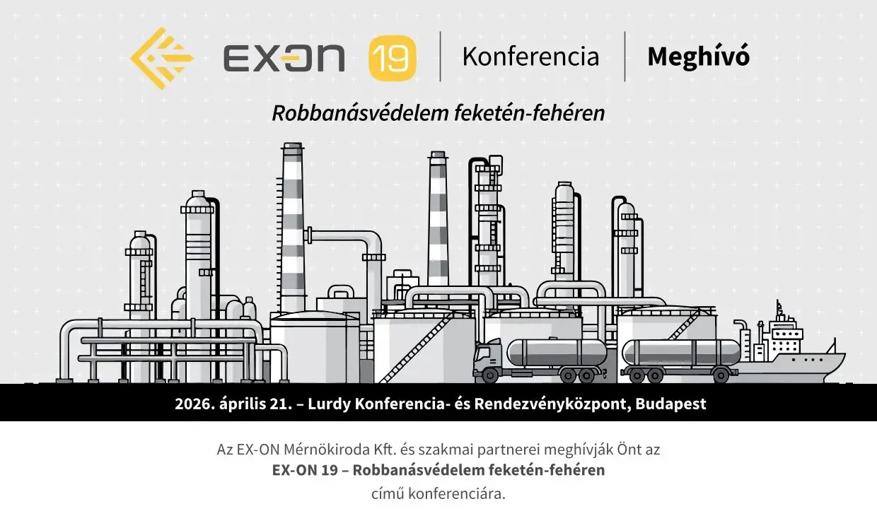 Az EX-ON Mérnökiroda Kft. 2026. április 21-én rendezi meg „EX-ON 19 – Robbanásvédelem feketén-fehéren” című szakmai konferenciáját a budapesti Lurdy Konferencia- és Rendezvényközpontban.